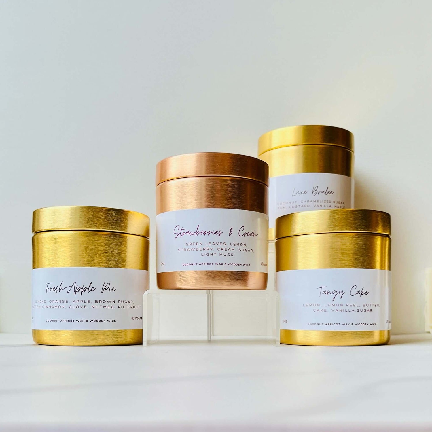 Immerse yourself in the delightful world of Sweet Candles with our handcrafted Dessert Candles Collection, made from luxurious Coconut Apricot Wax and featuring a soothing Wood Wick. Each candle is designed to evoke the comforting scents of your favorite desserts, from the sweet notes of our Strawberries and Cream Candle to the rich aroma of our Luxe Brûlée Candle. Craving a citrusy twist? The Tangy Cake Candle offers a zesty fragrance that brightens any room, while the Fresh Apple Pie Candle fills your space with the warm, inviting scent of a freshly baked pie. Experience a touch of luxury with every burn and create a cozy, delicious atmosphere in your home.